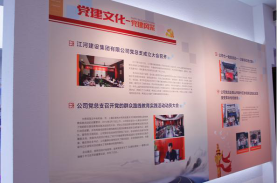 2015年2月15日,江河建設集團有限公司企業展示室正式開館。公司高層、分公司辦事處負責人及全體員工參加開館儀式,董事長袁偉忠先生親自為企業展示室揭牌。展示室通過照片、實物和文字說明,從企業架構、產業簡介、江河團隊、企業榮譽展示、黨建文化、社會公益和企業愿景等方面生動、細致地展示了江河建設集團有限公司二十年的發展歷程與發展成就。