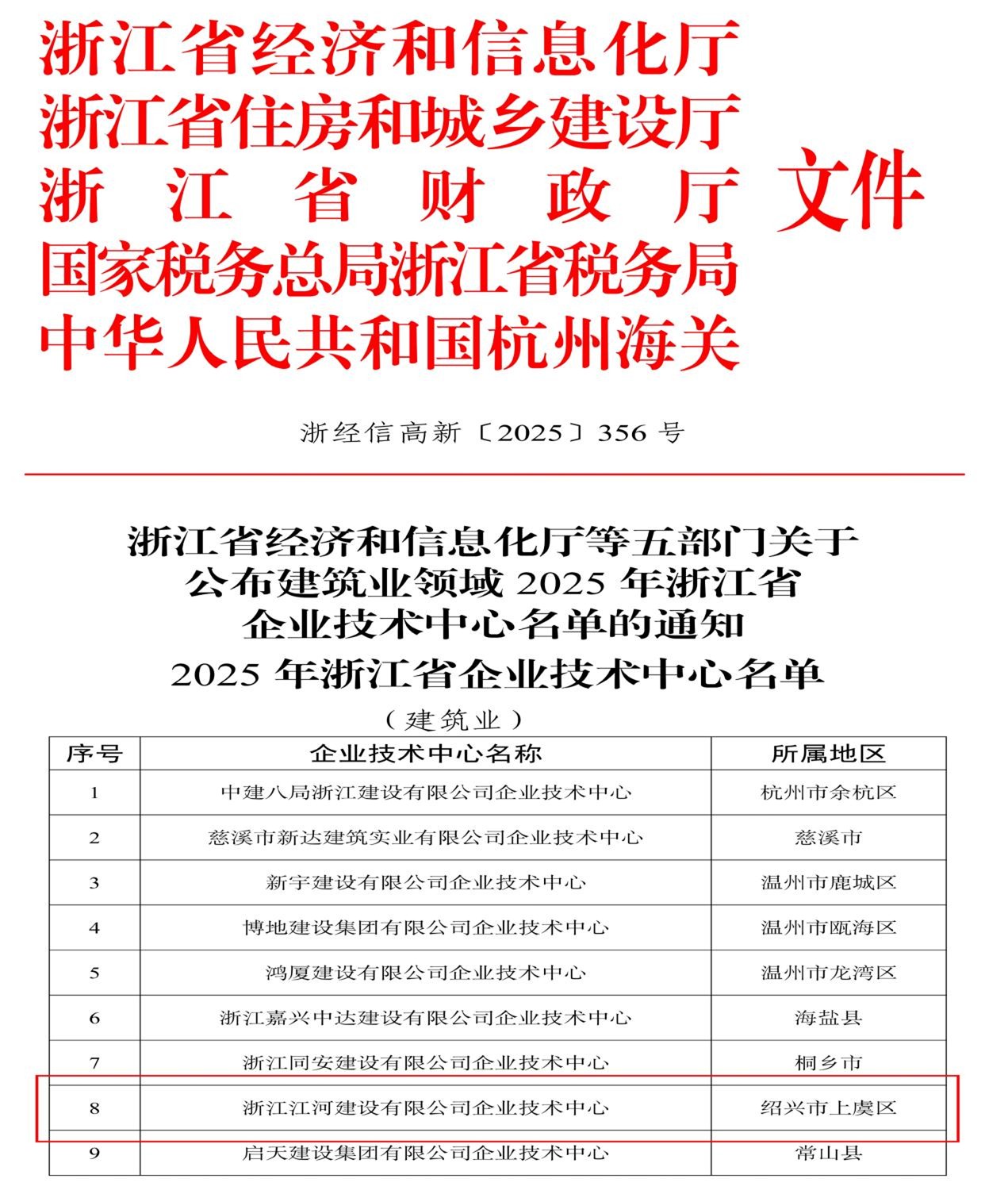 12月26日,浙江省經濟和信息化廳等五部門聯合發布了建筑業領域2025年浙江省企業技術中心獲評名單,...
