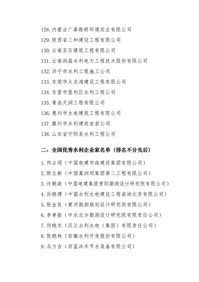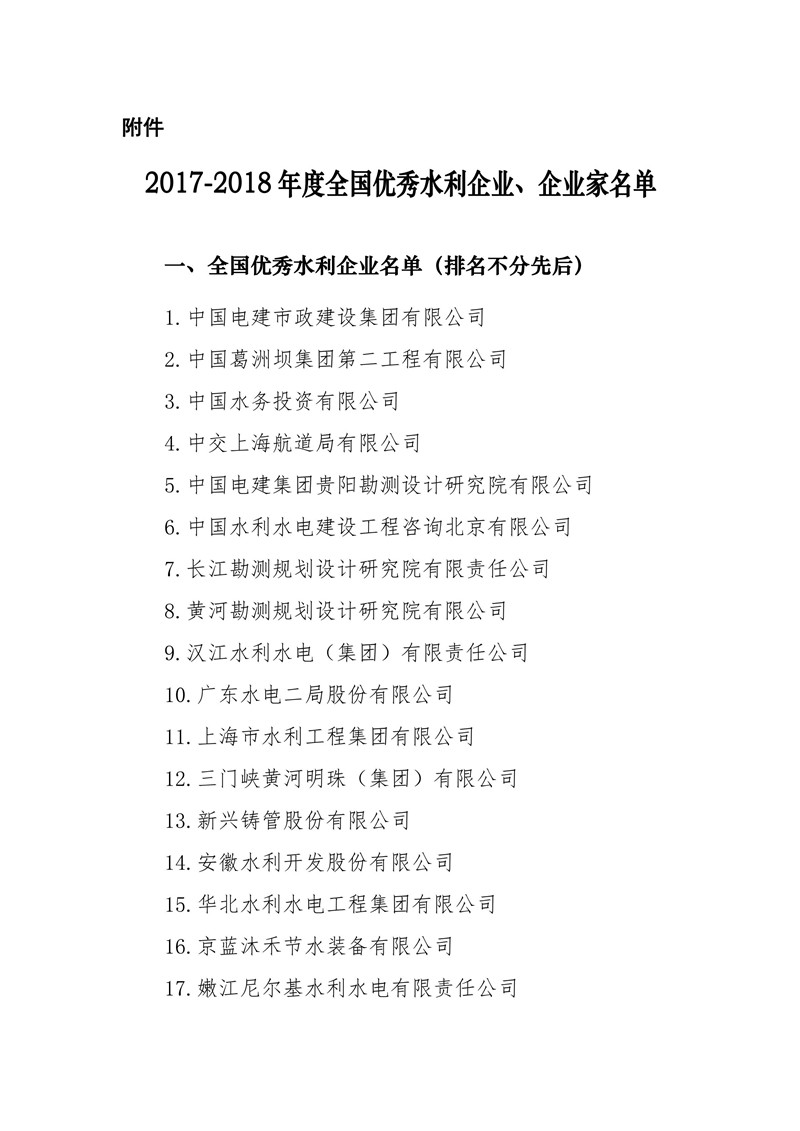 關于表彰2017-2018年度全國優秀水利企業、優秀水利企業家的決定