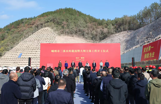 2025年12月10日,我司中標的嵊州市三溪水庫工程舉行截流暨大壩主體工程開工儀式。標志著這個省級“千項萬億”重大項目前期工作取得重大勝利,大壩主體正式進入施工階段,紹興市副市長羅延發、省水利廳二級巡視員宣偉麗、嵊州市委書記裘建勇,市長潘超英、紹興市水利局局長等參加開工儀式,公司董事長袁偉忠也親臨現場。